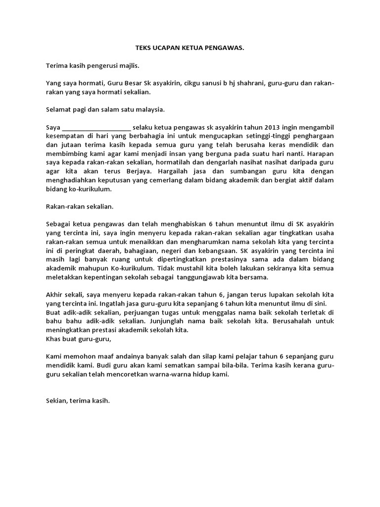 Teks Ucapan Ketua Pelajar Sempena Hari Guru Pdf